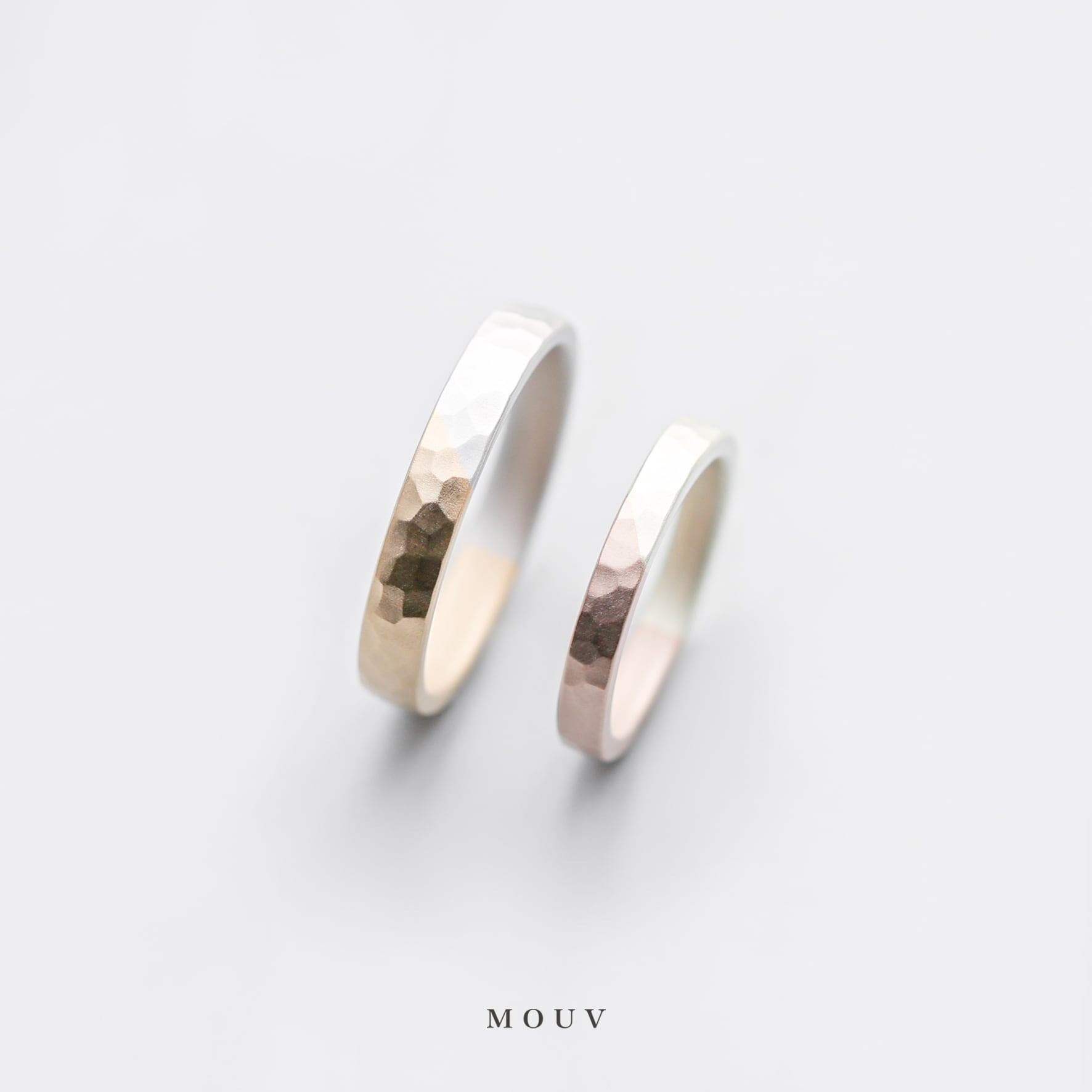 身につける月日と共に摩擦で鎚目のエッジから少しづつ光沢が出てくるため、指輪を育てているような感覚になれるのもポイントです。