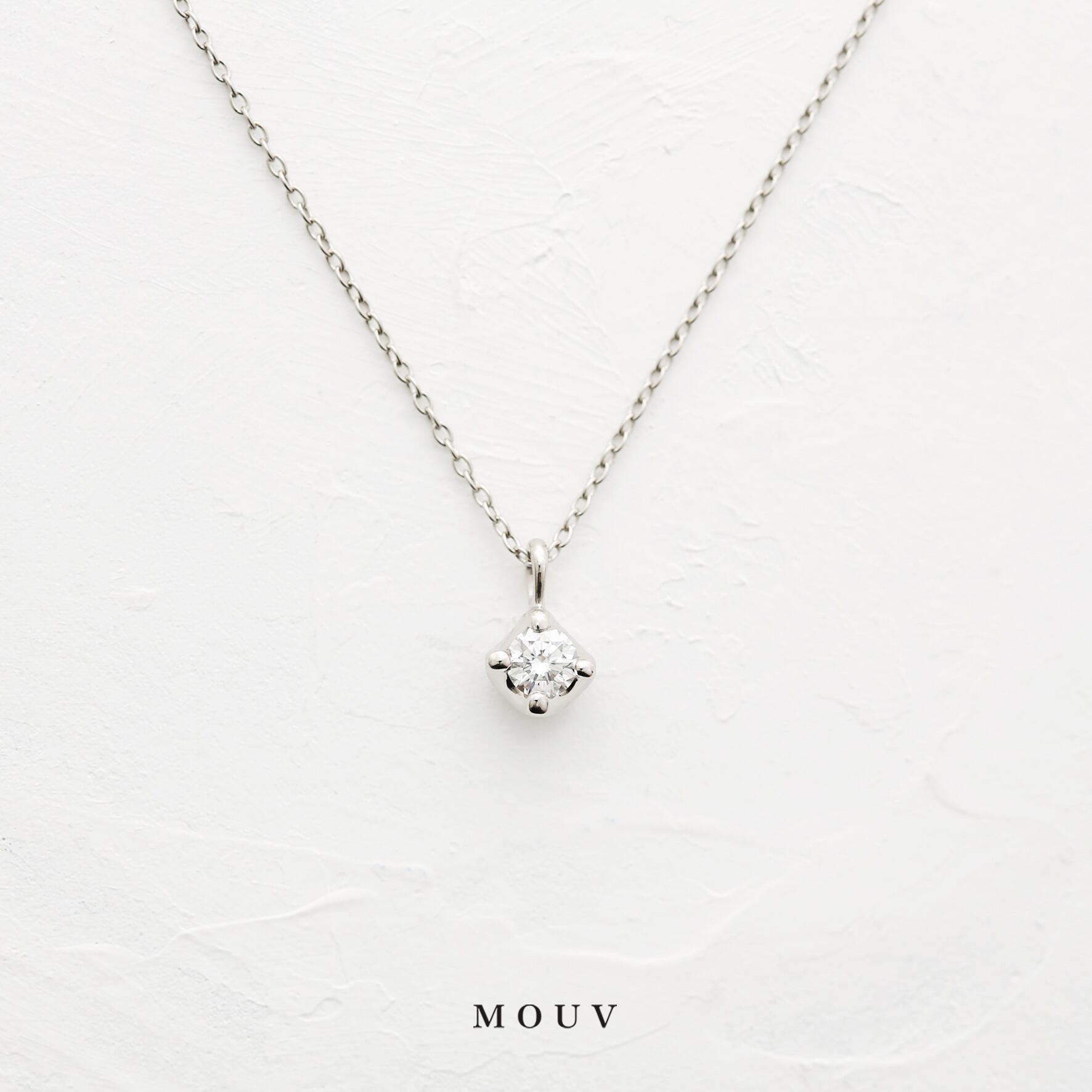誰にでも似合う一粒ダイヤモンドのシンプルなデザインで、プラチナとゴールドの2種類の素材からお選びいただけます。