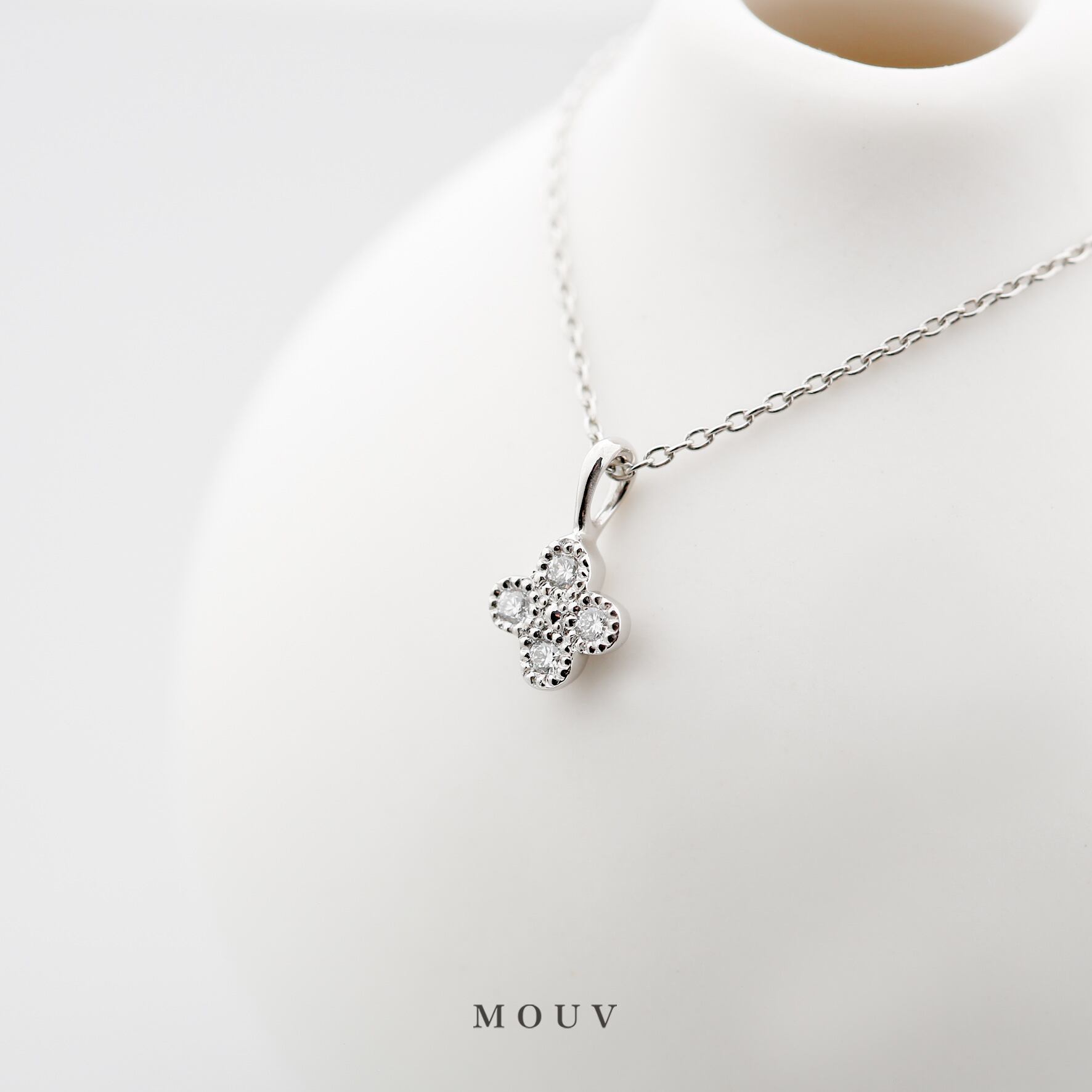 ダイヤモンドを花のようにあしらった、かわいらしいプラチナのネックレス。