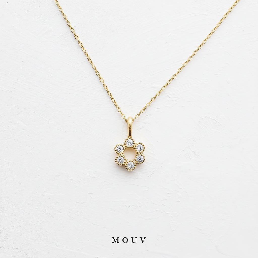 6ピースのダイヤモンドをリースのように配したイエローゴールドのネックレス。