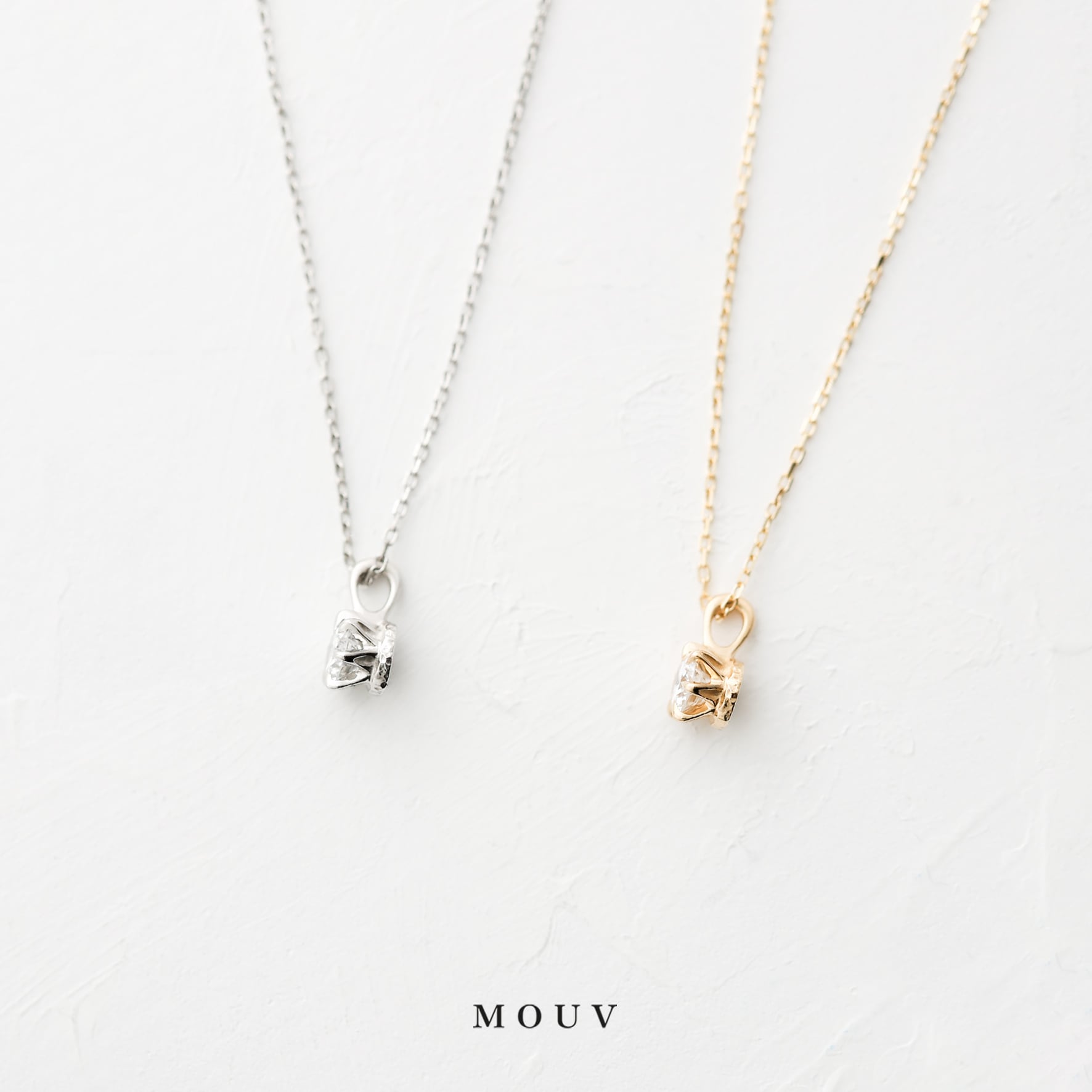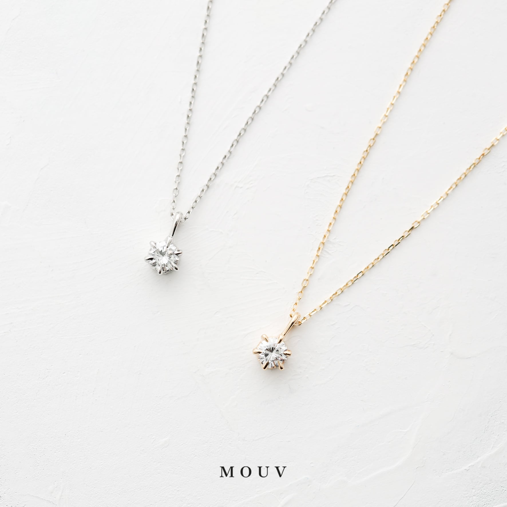 誰にでも似合う一粒ダイヤモンドのシンプルなデザインで、プラチナとゴールドの2種類の素材からお選びいただけます。