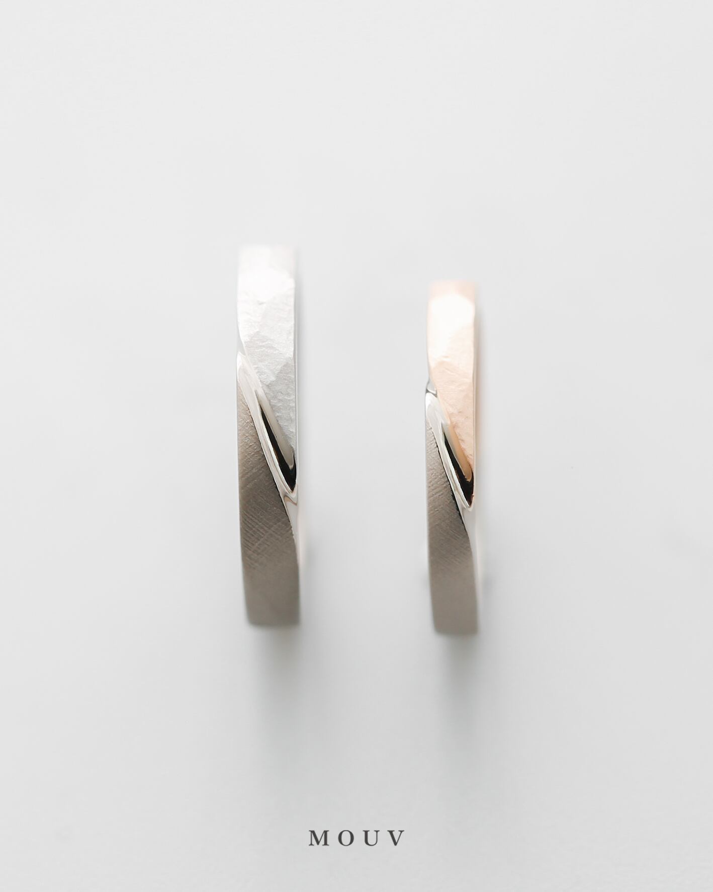 経年変化が楽しめるテクスチャーと動きのある形を組み合わせた結婚指輪。