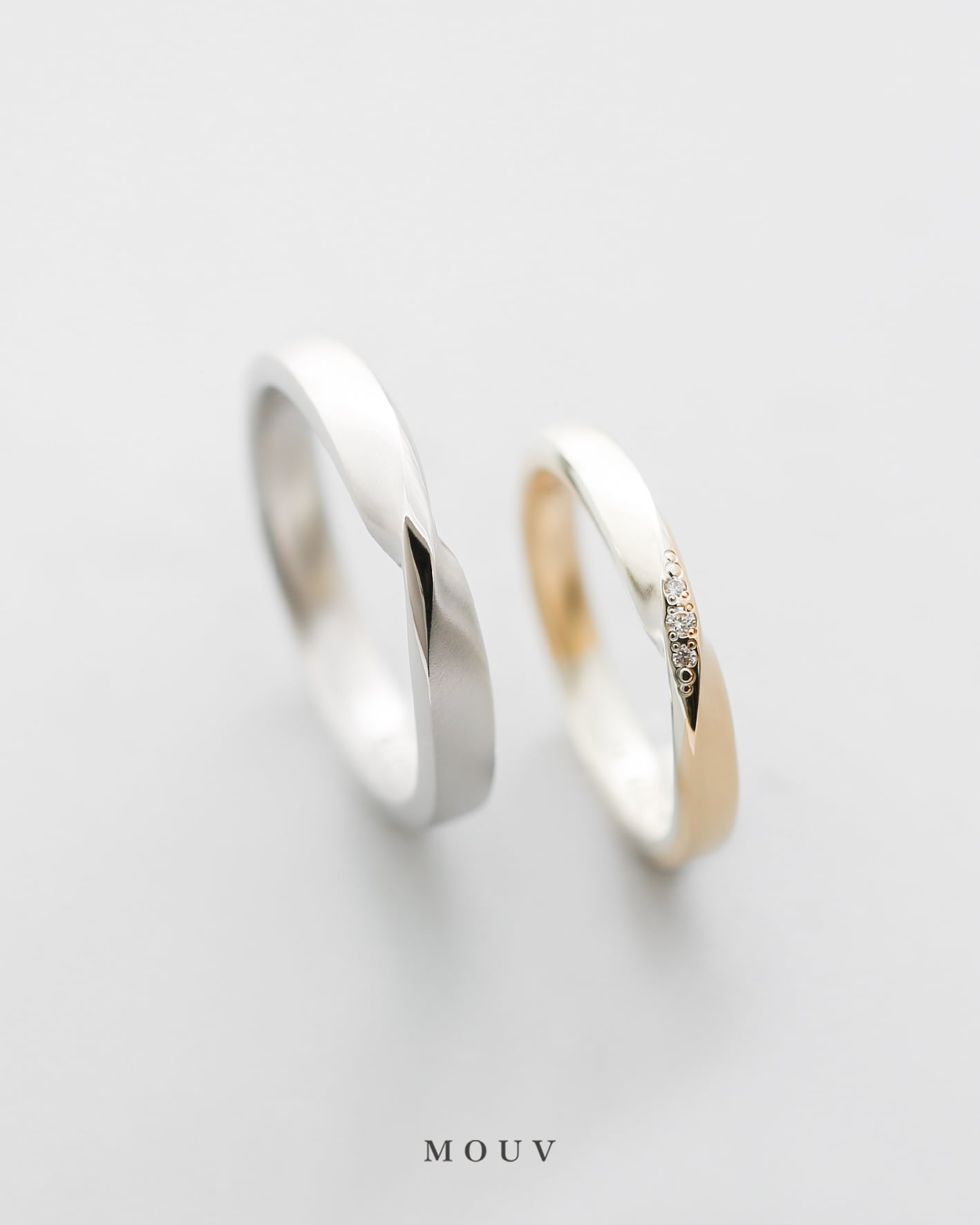 バイカラーメビウス+3連ダイヤの結婚指輪