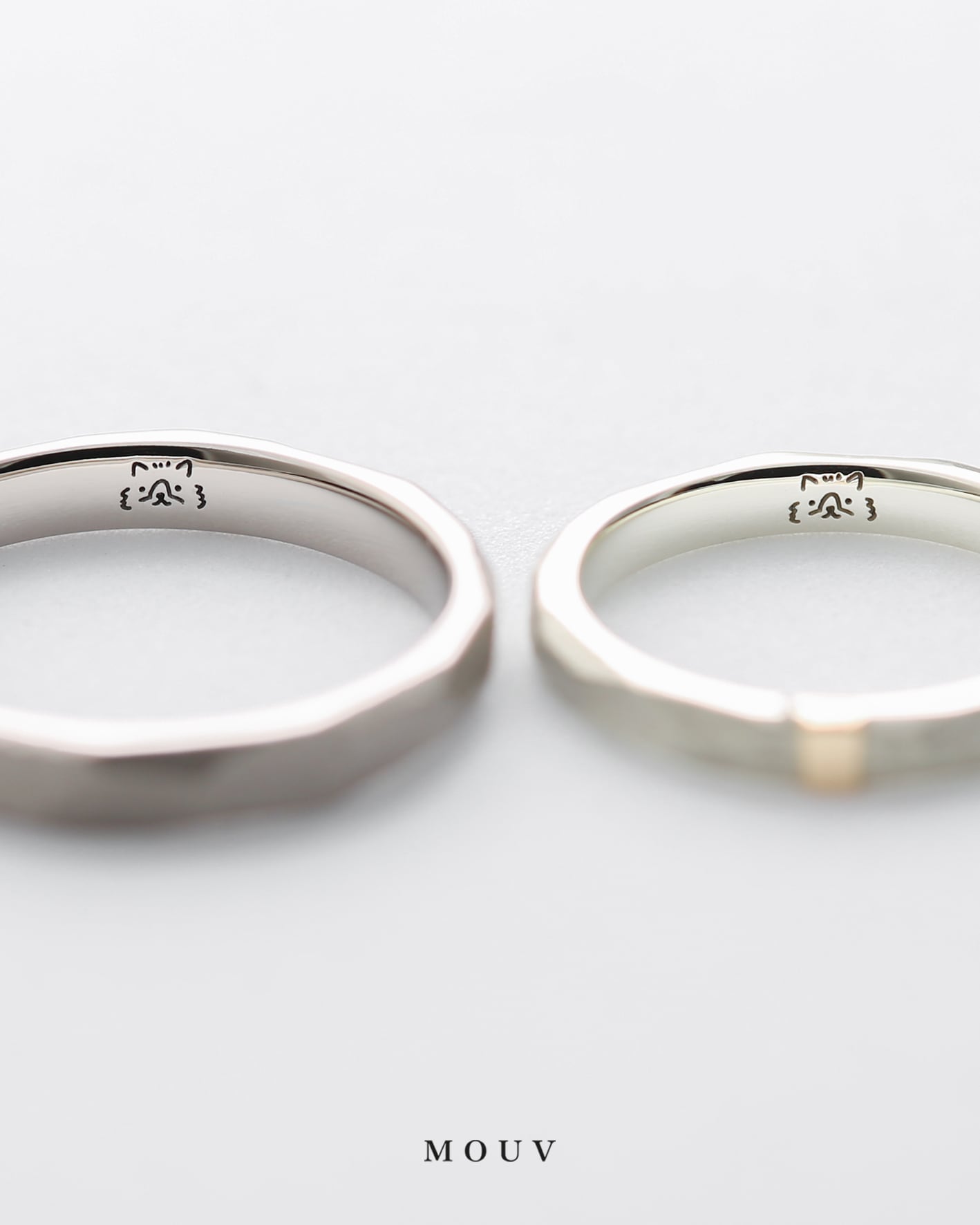 リング内側にはおふたりと一緒に暮らしている、かわいらしい愛猫のイラストを刻印しました。