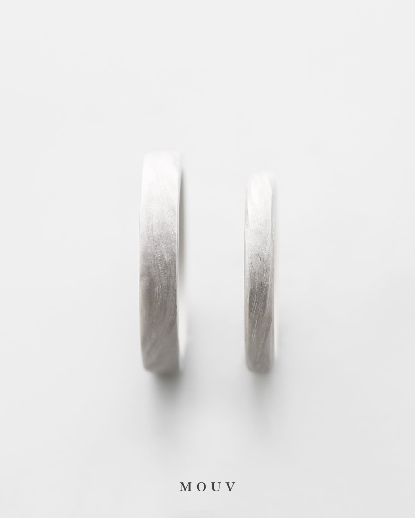 男性は外側全面に木目模様を施し、女性は半分に優しい光沢のサテンテクスチャーを取り入れました。