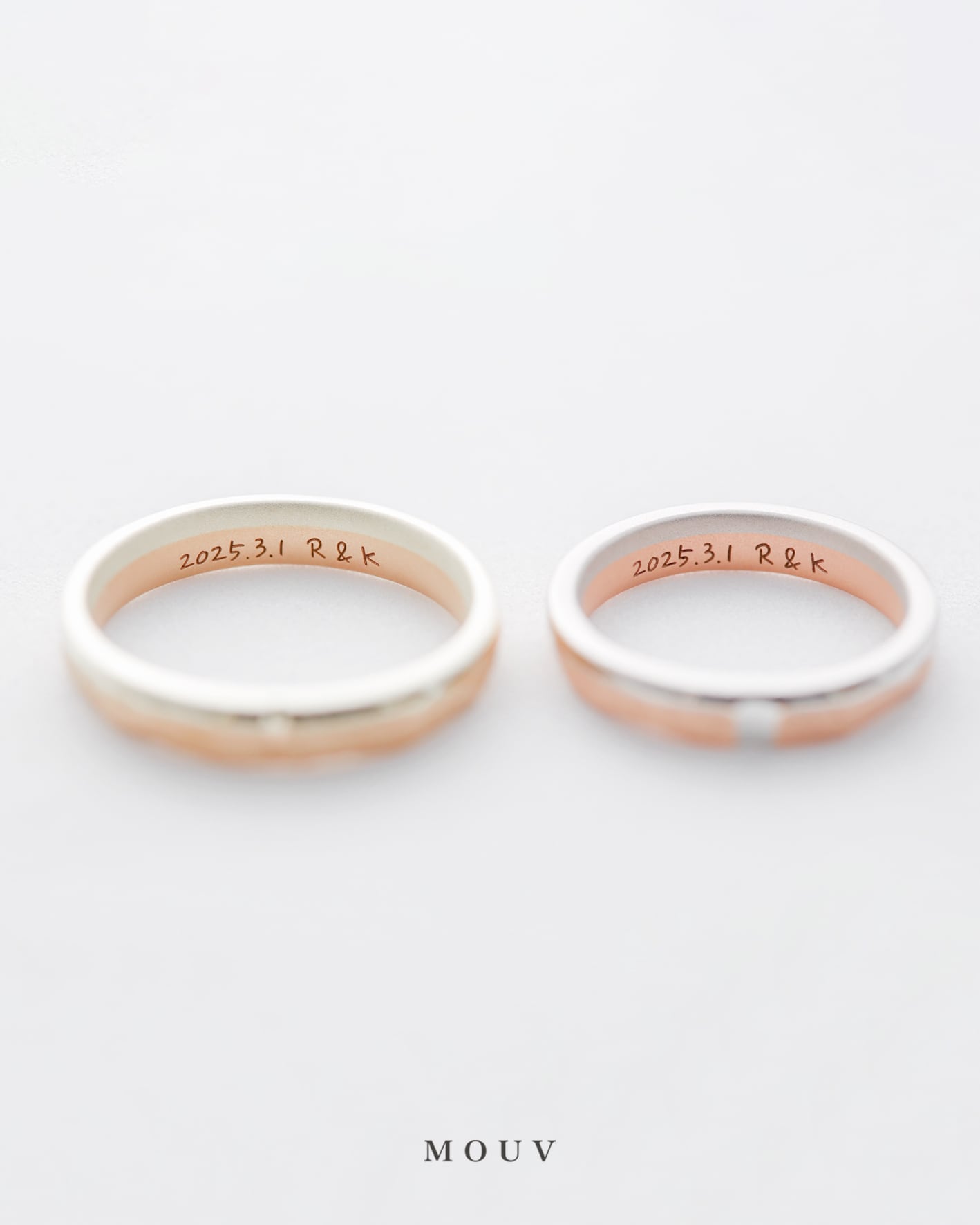 2列で色と表情を変えることで、他にはないおふたりならではの雰囲気をまとった結婚指輪に。