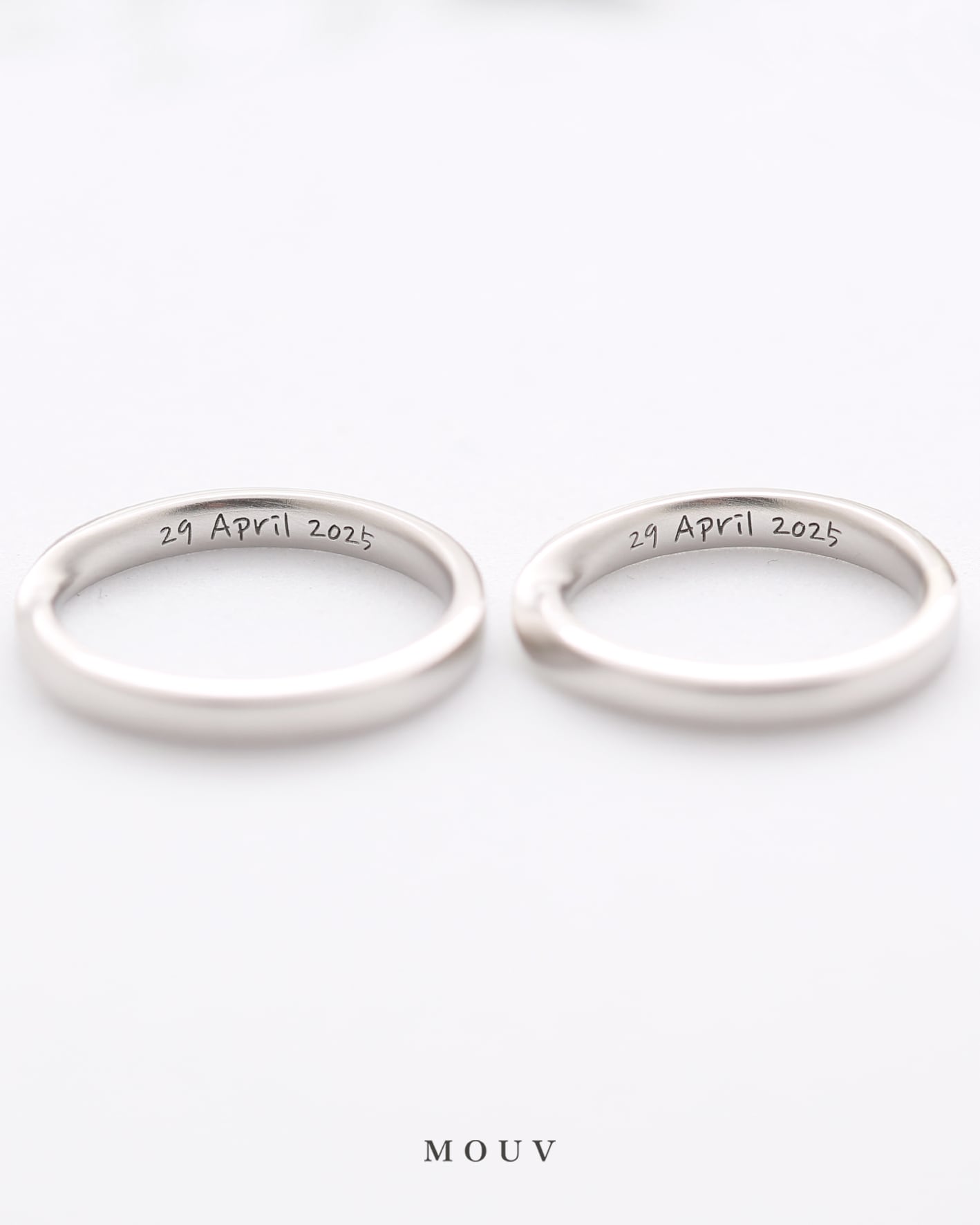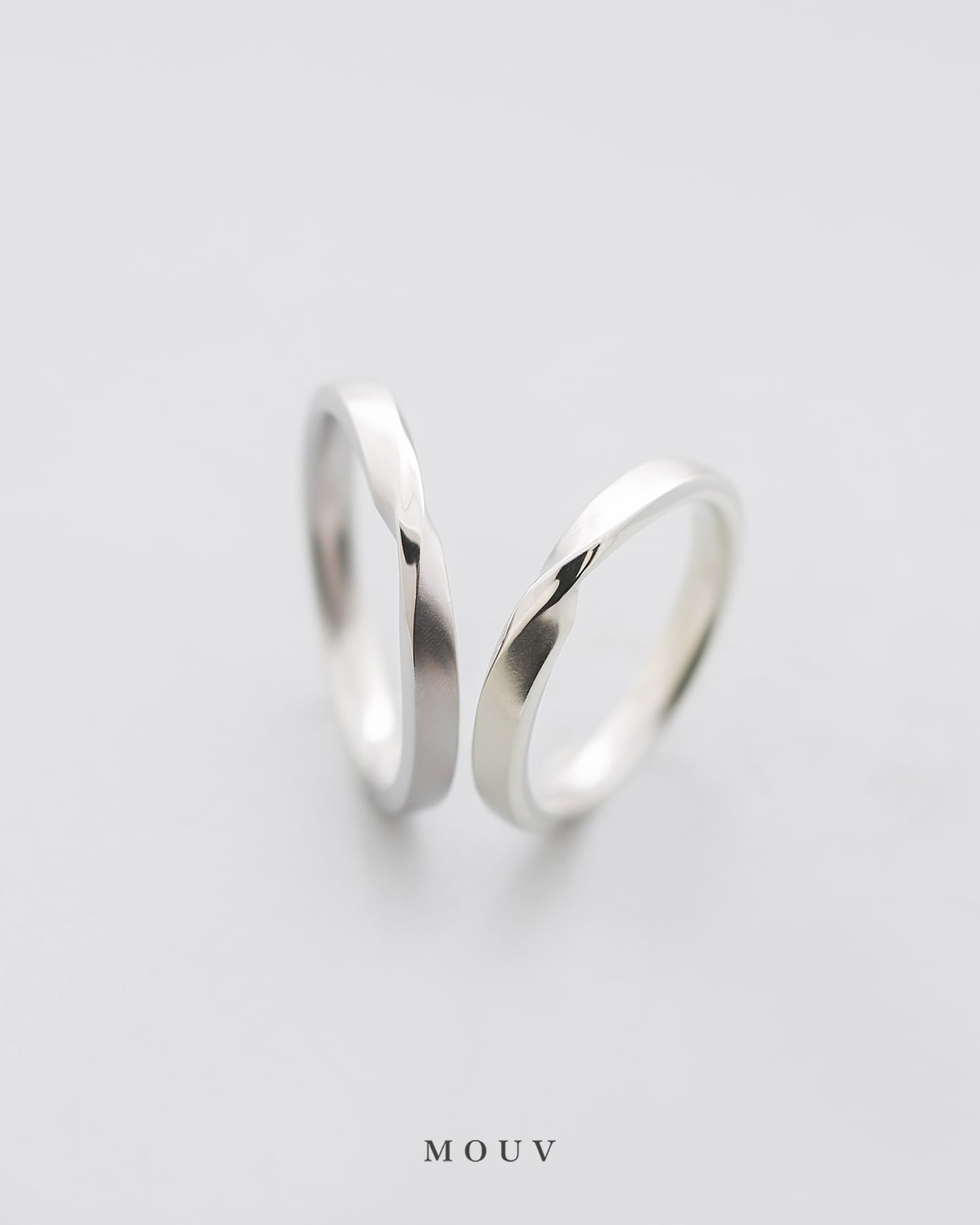 お揃いのメビウスデザインで、女性のみグリーンゴールドを加えた結婚指輪。