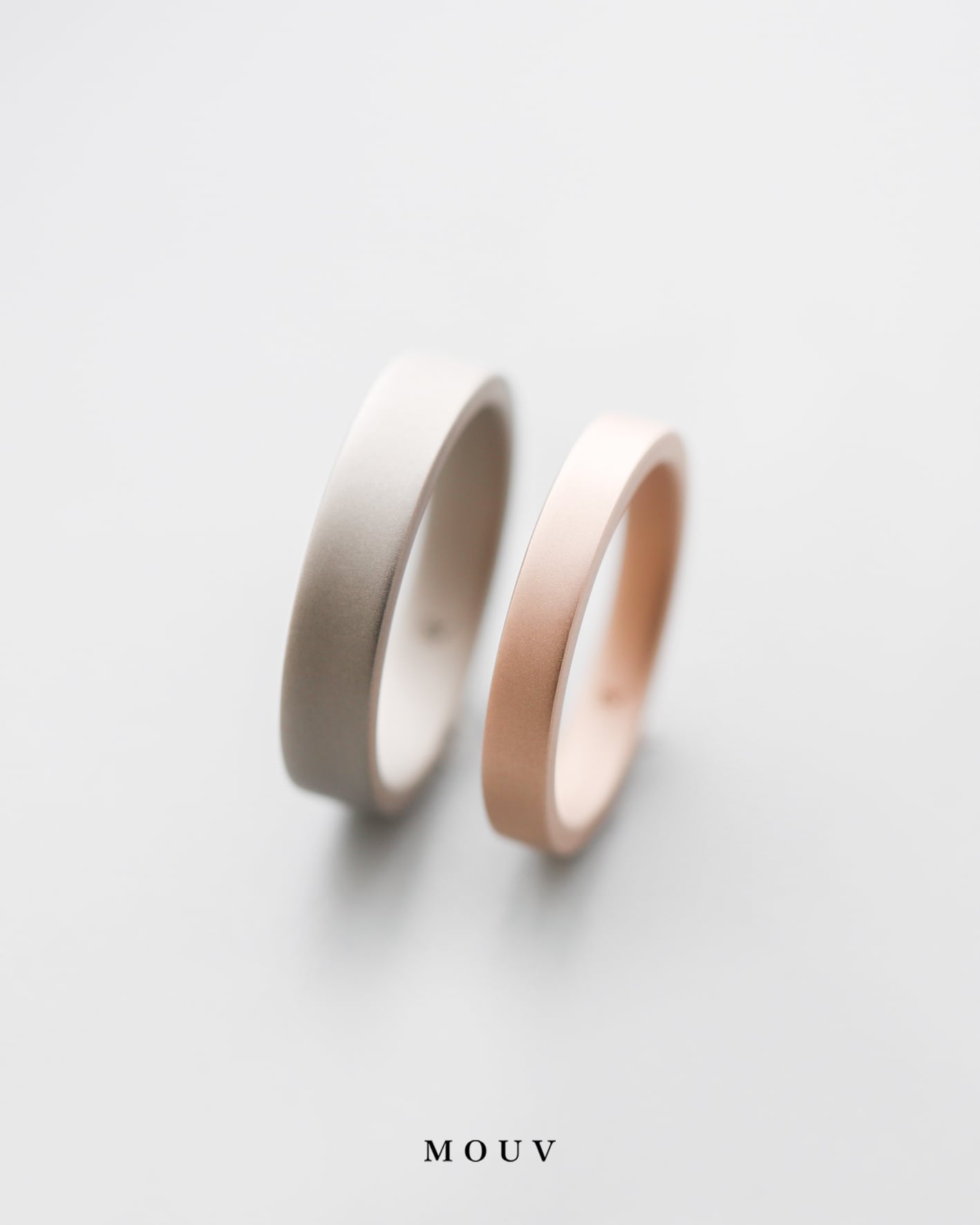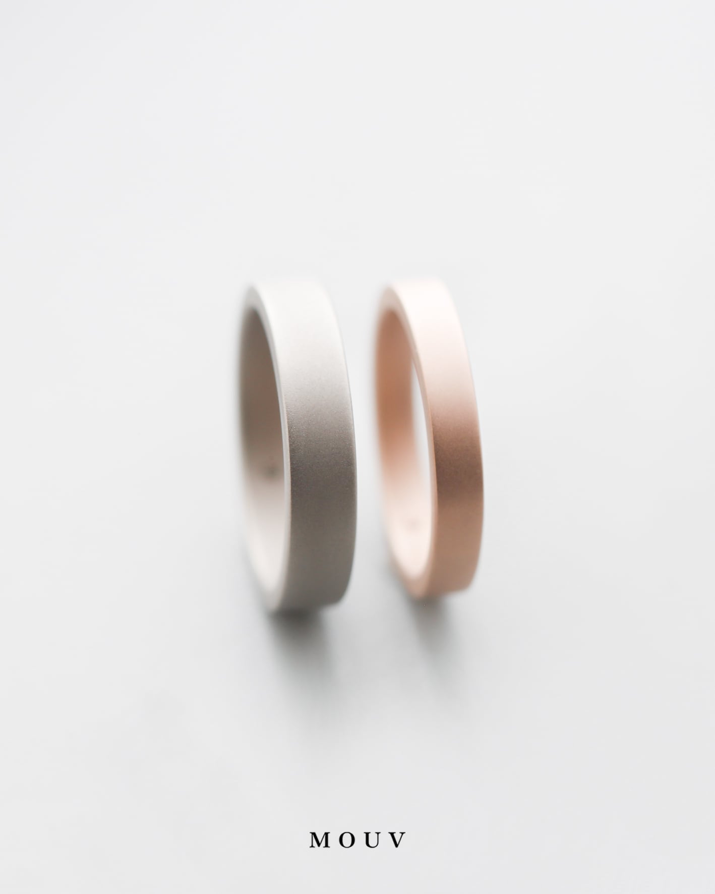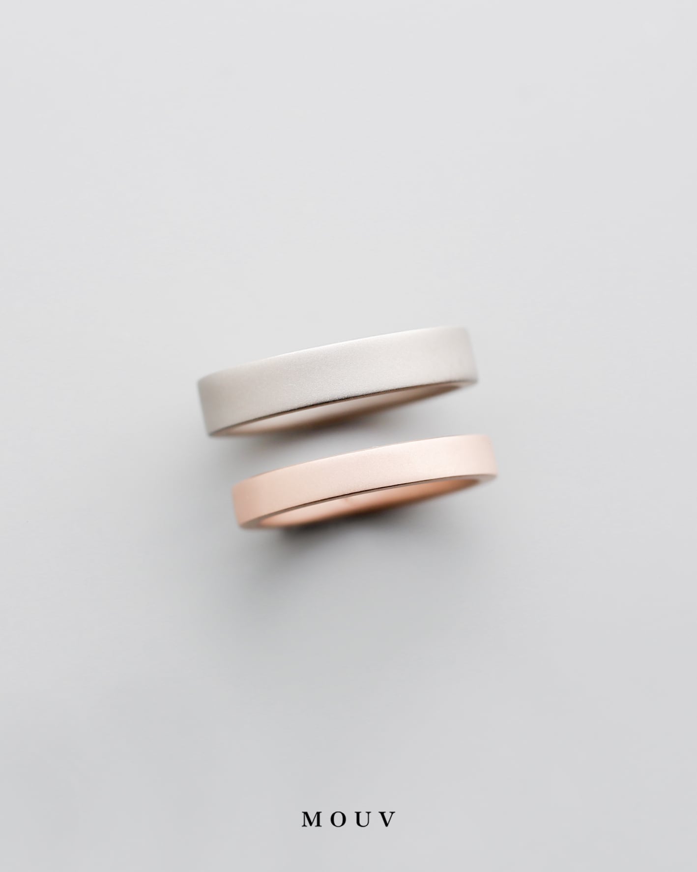 幅広の平打ちリングを、全面マット艶消しで仕上げた結婚指輪。