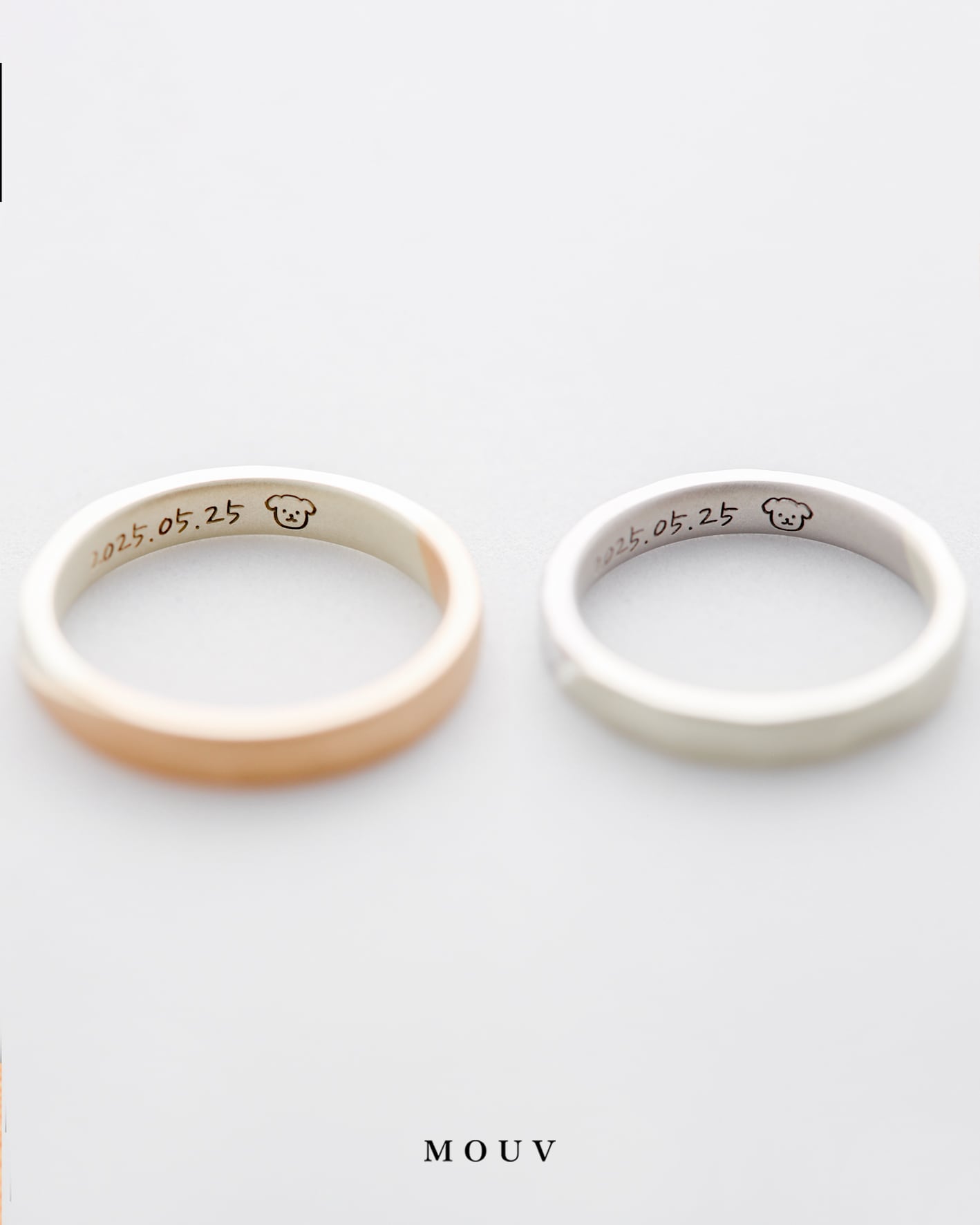 お互いの好みを尊重しつつ、さりげなくお揃いを取り入れた結婚指輪。