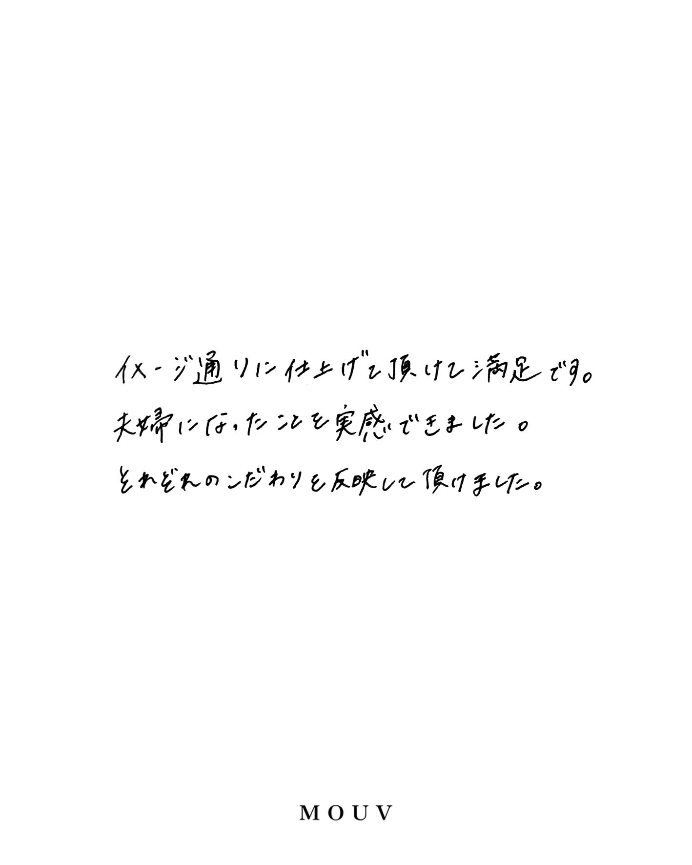 おふたりそれぞれに好みの素材を選びつつも、ペア感が美しい仕上がりとなりました。