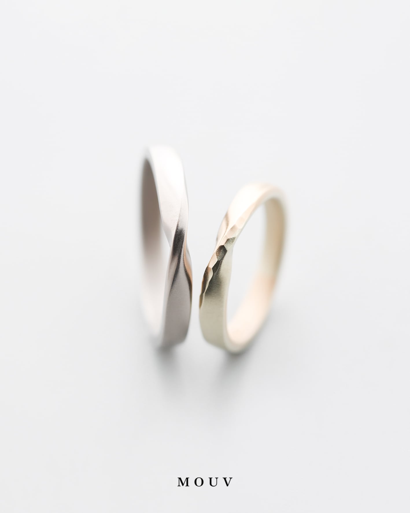 メビウスデザインをベースに、それぞれの好みも取り入れた結婚指輪。