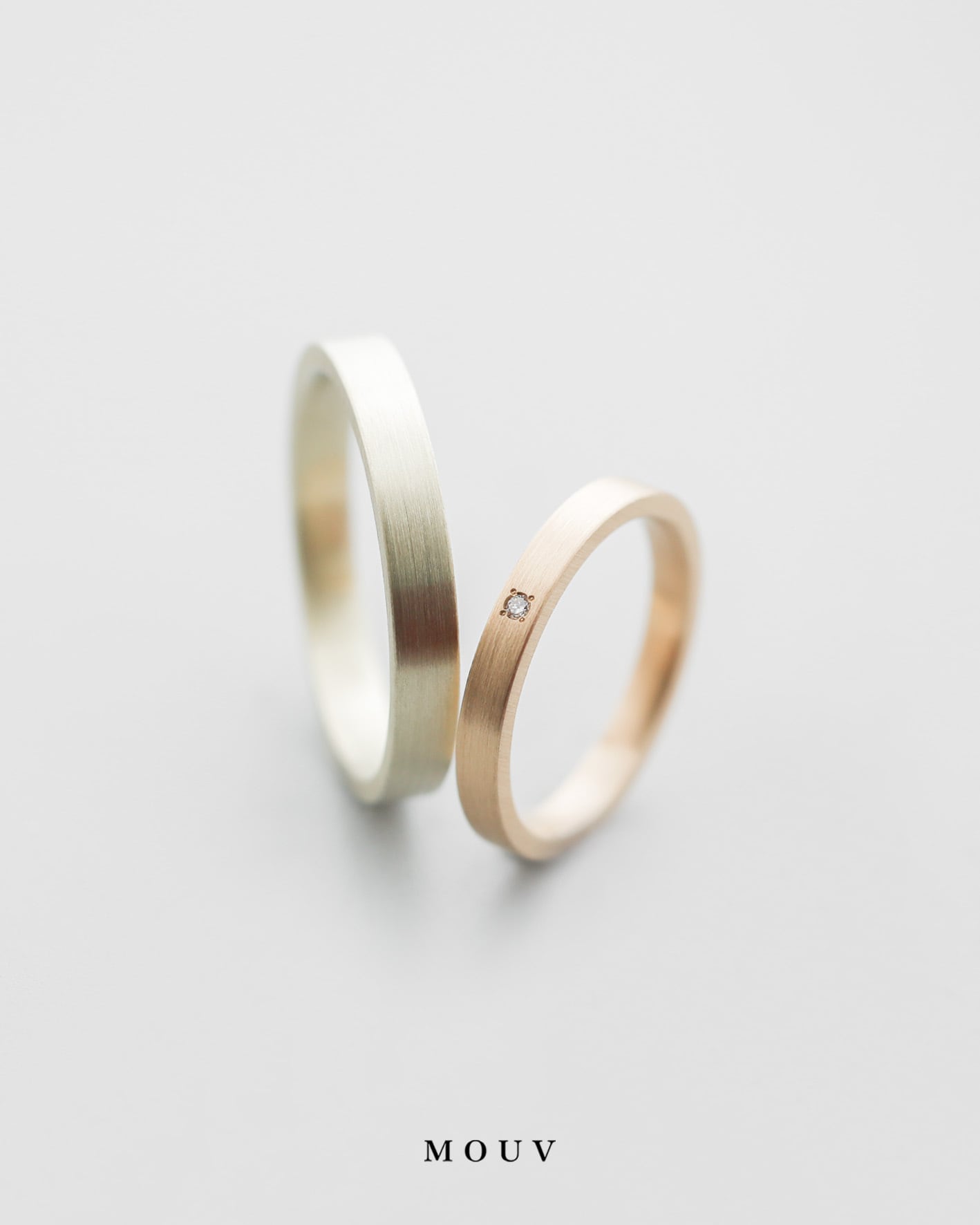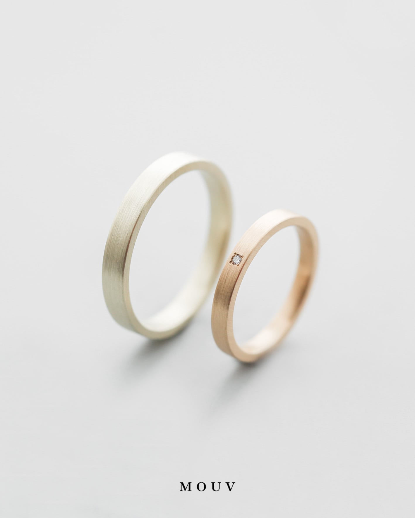 女性リングにはダイヤモンドを一粒添えて、さりげないアクセントに。