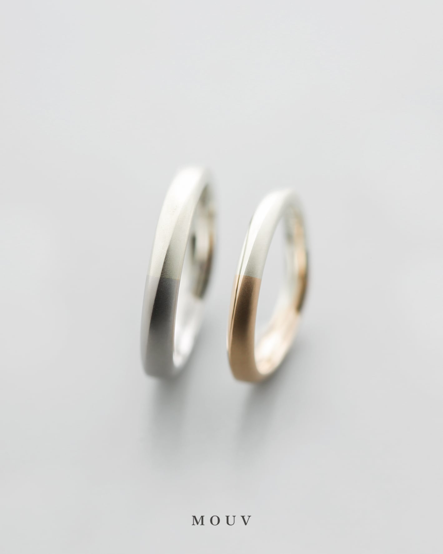 お揃いの爽やかなカラーのグリーンゴールドに、お互いの好きな色を組み合わせました。