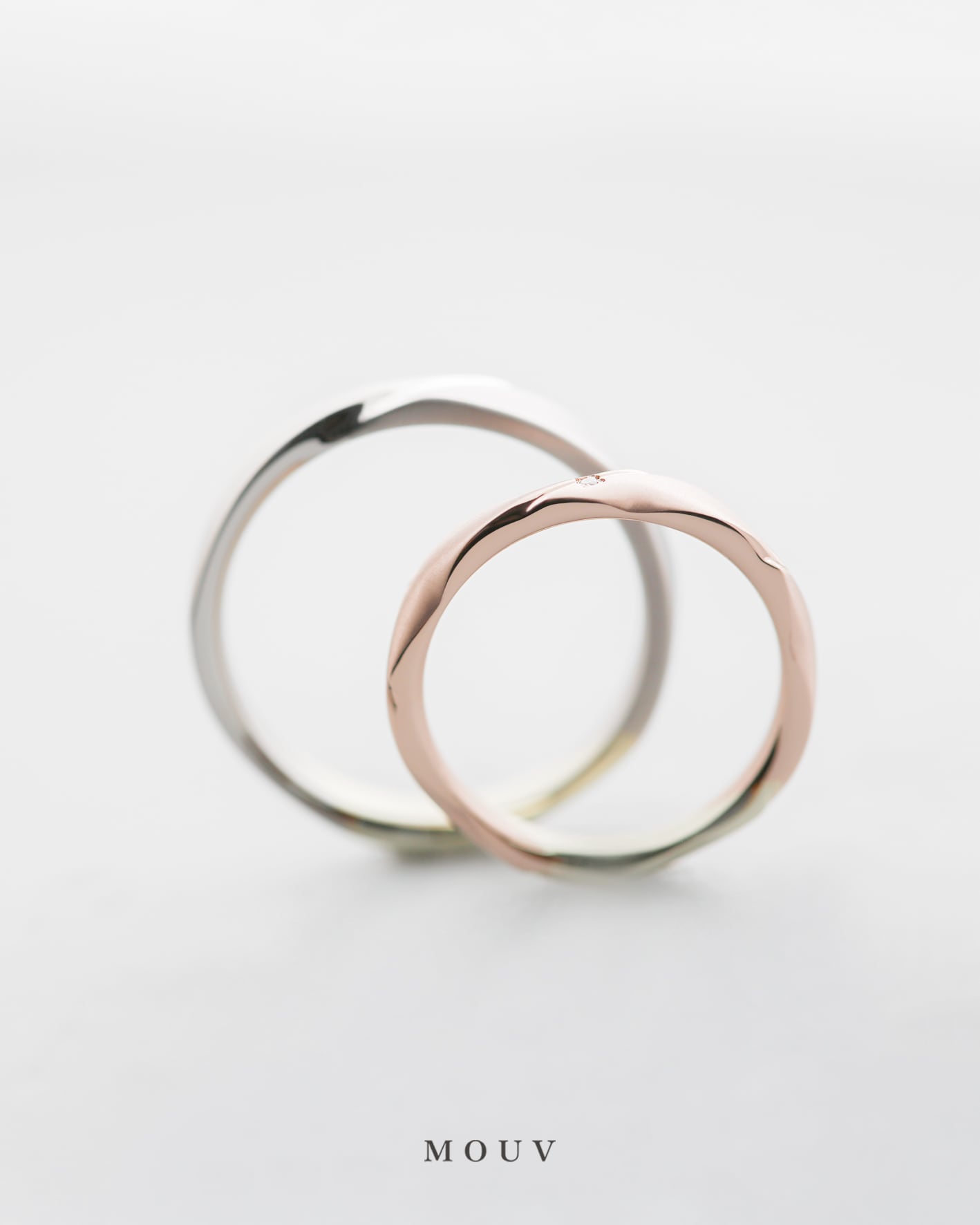 見る角度によって様々な表情を楽しむことができるコンビネーションリングとなりました。