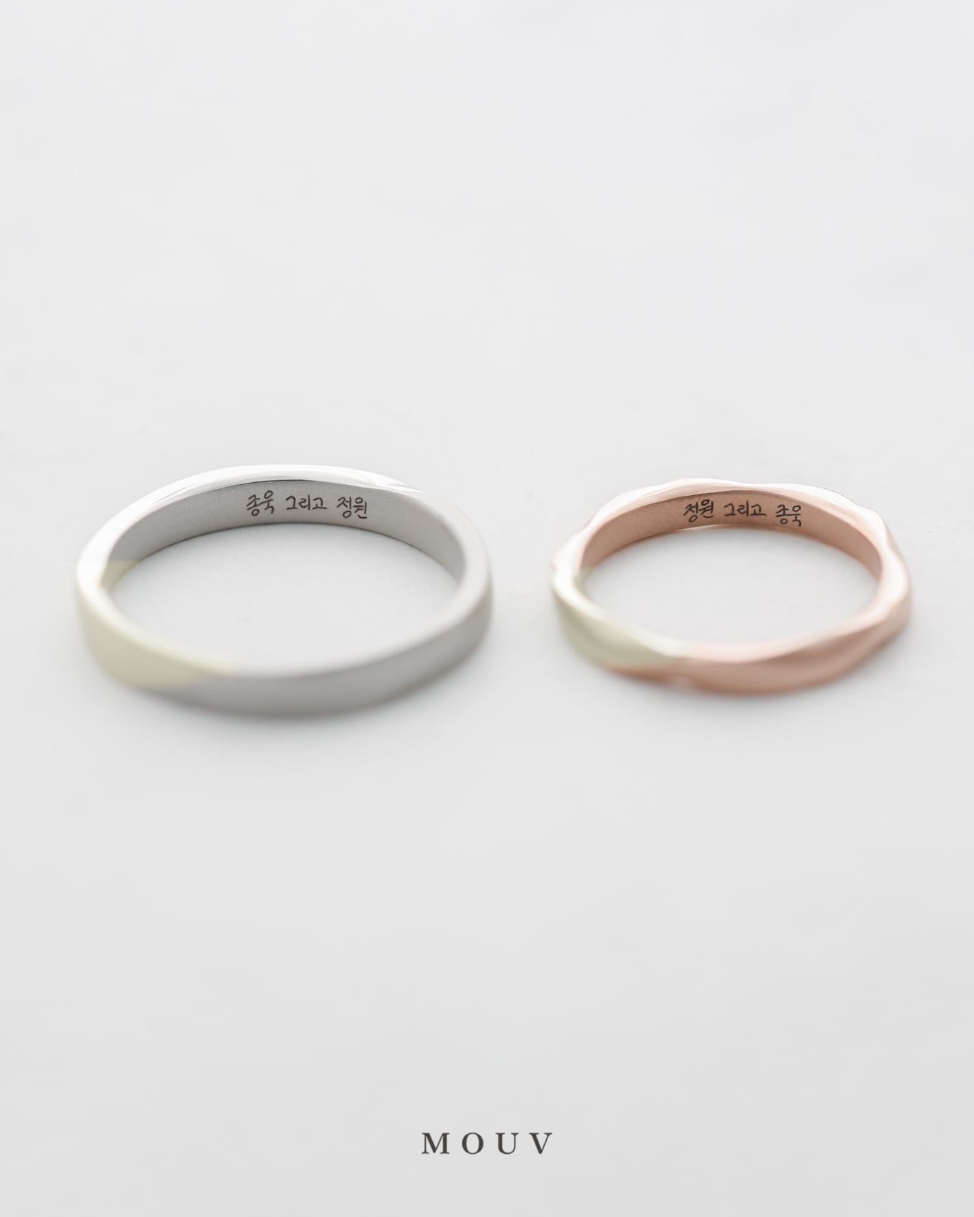 リング全体を流れるような動きと陰影が美しい結婚指輪。