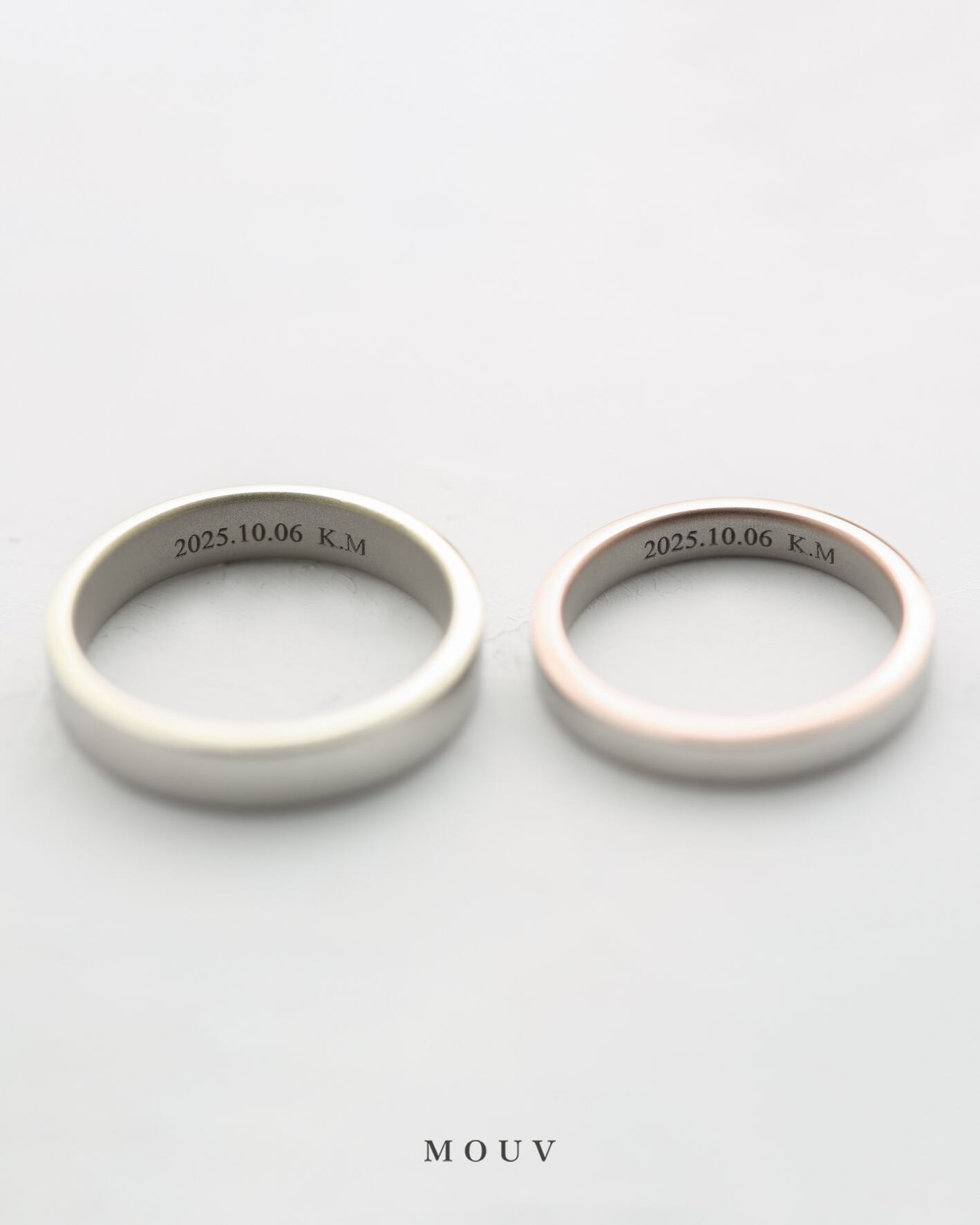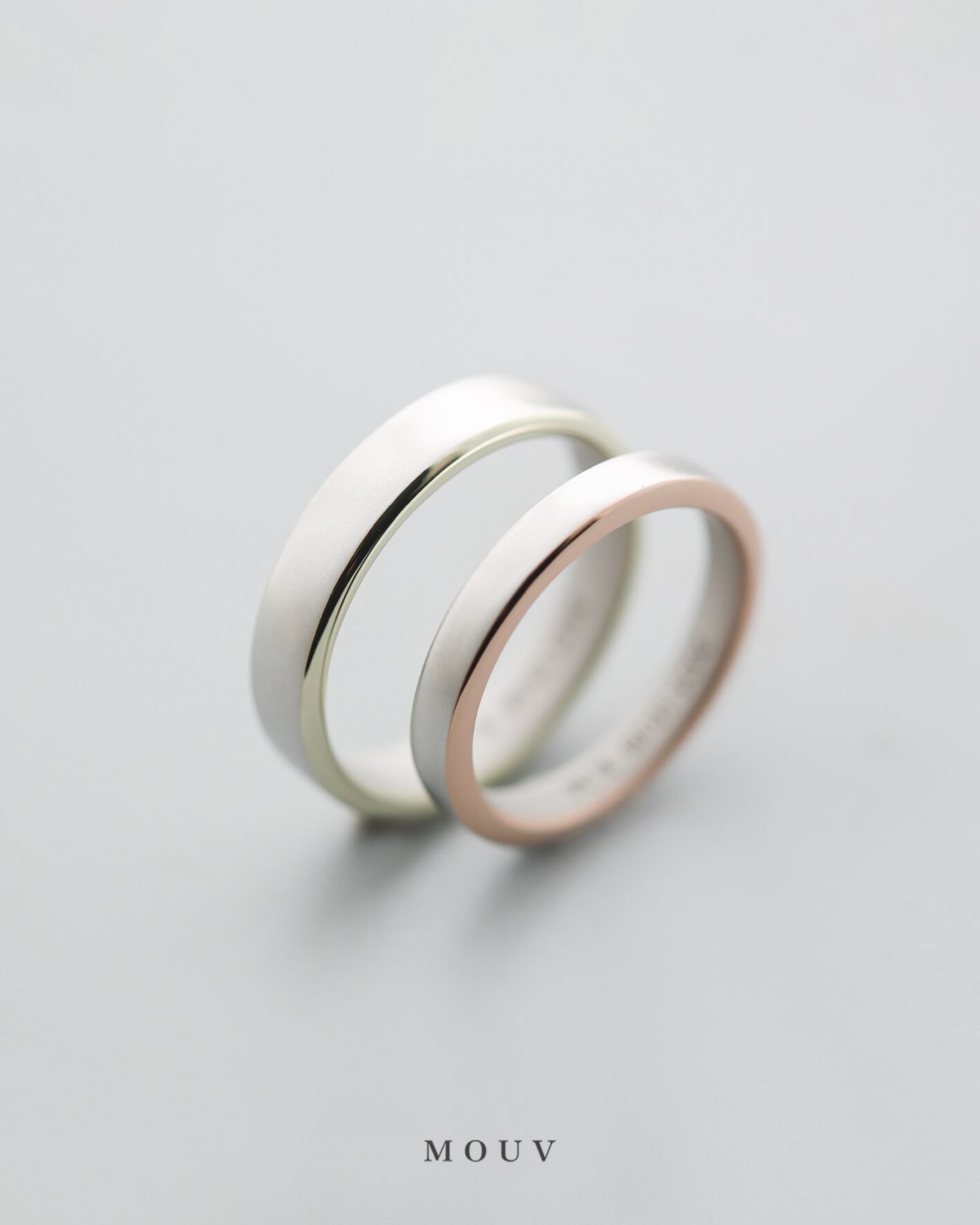 一見シンプルな1色のペアに見えますが、側面にさりげなく好みの色を組み合わせたおしゃれな結婚指輪。