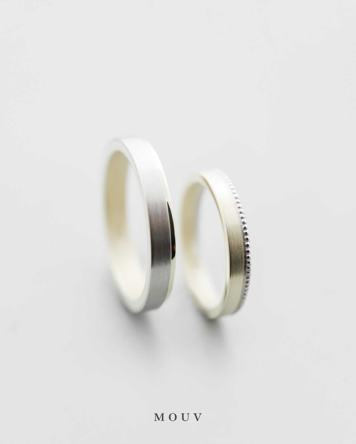 女性はプラチナ部分にミルグレインを施し、クラシカルな印象です。