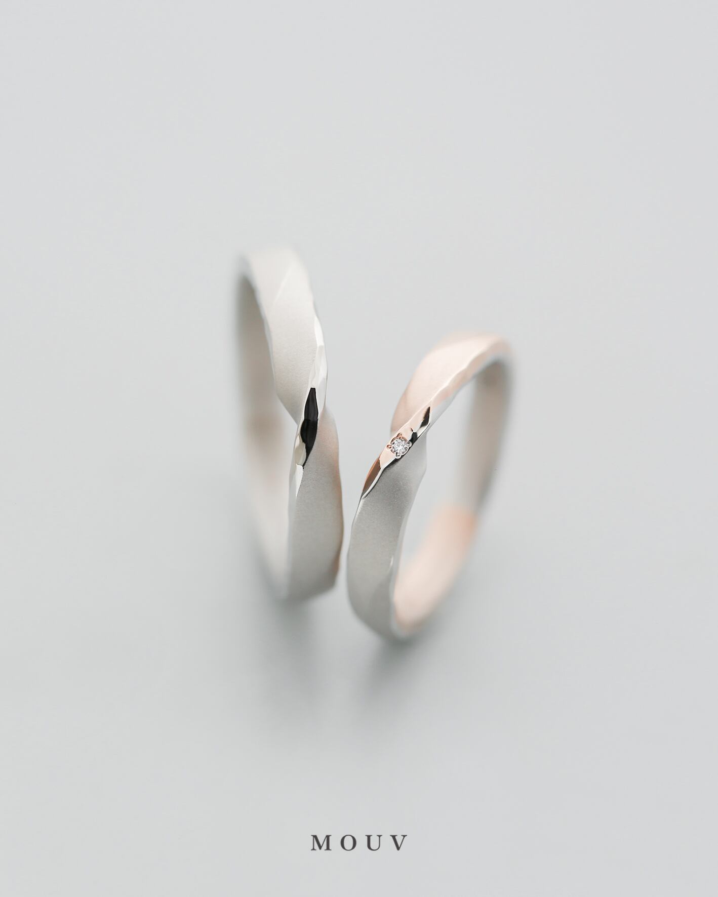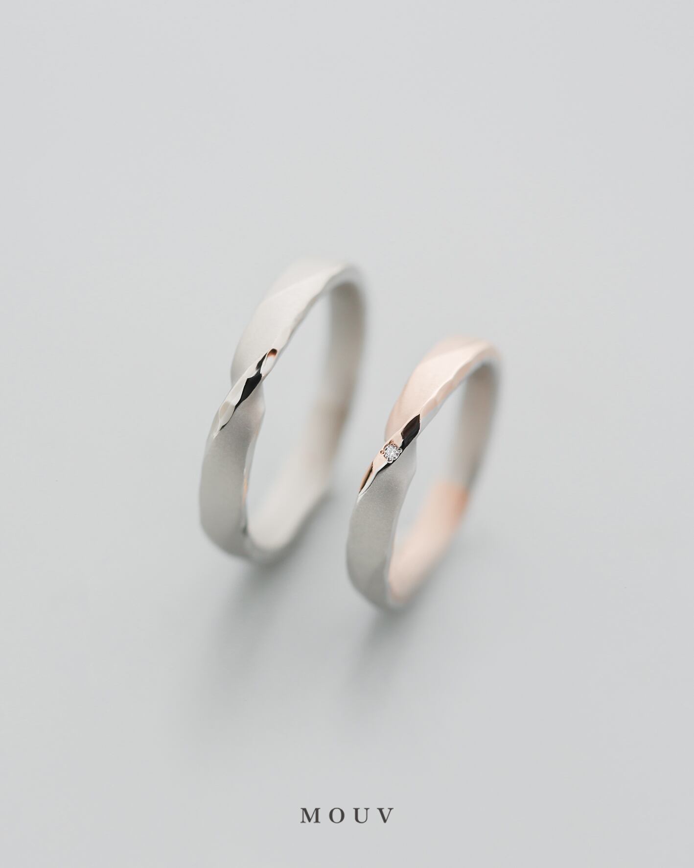 お揃いのプラチナにお互いの好きな色味を組み合わせたメビウスデザイン。