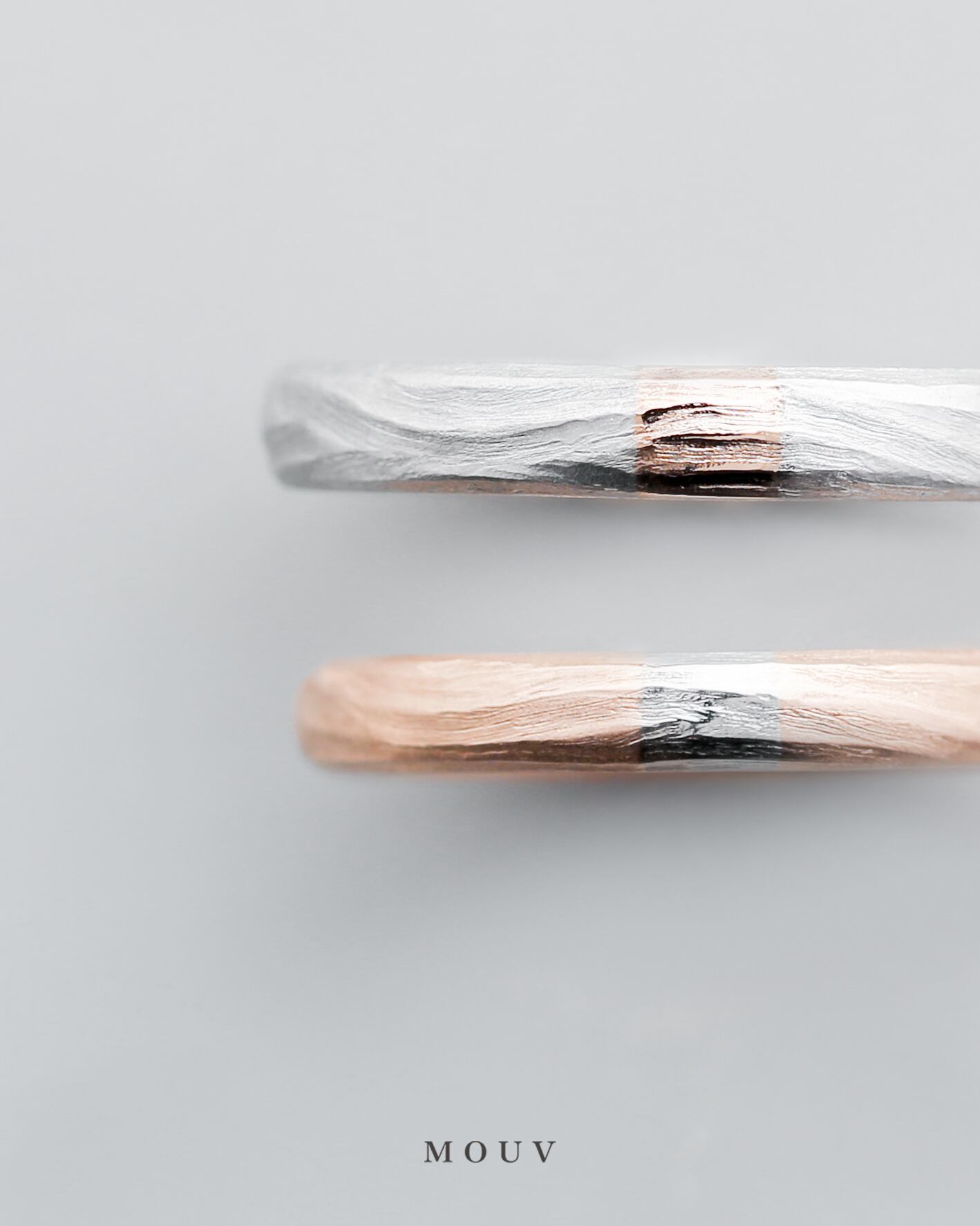 木目の優しい陰影を写し取ったようなテクスチャーを持つ結婚指輪。