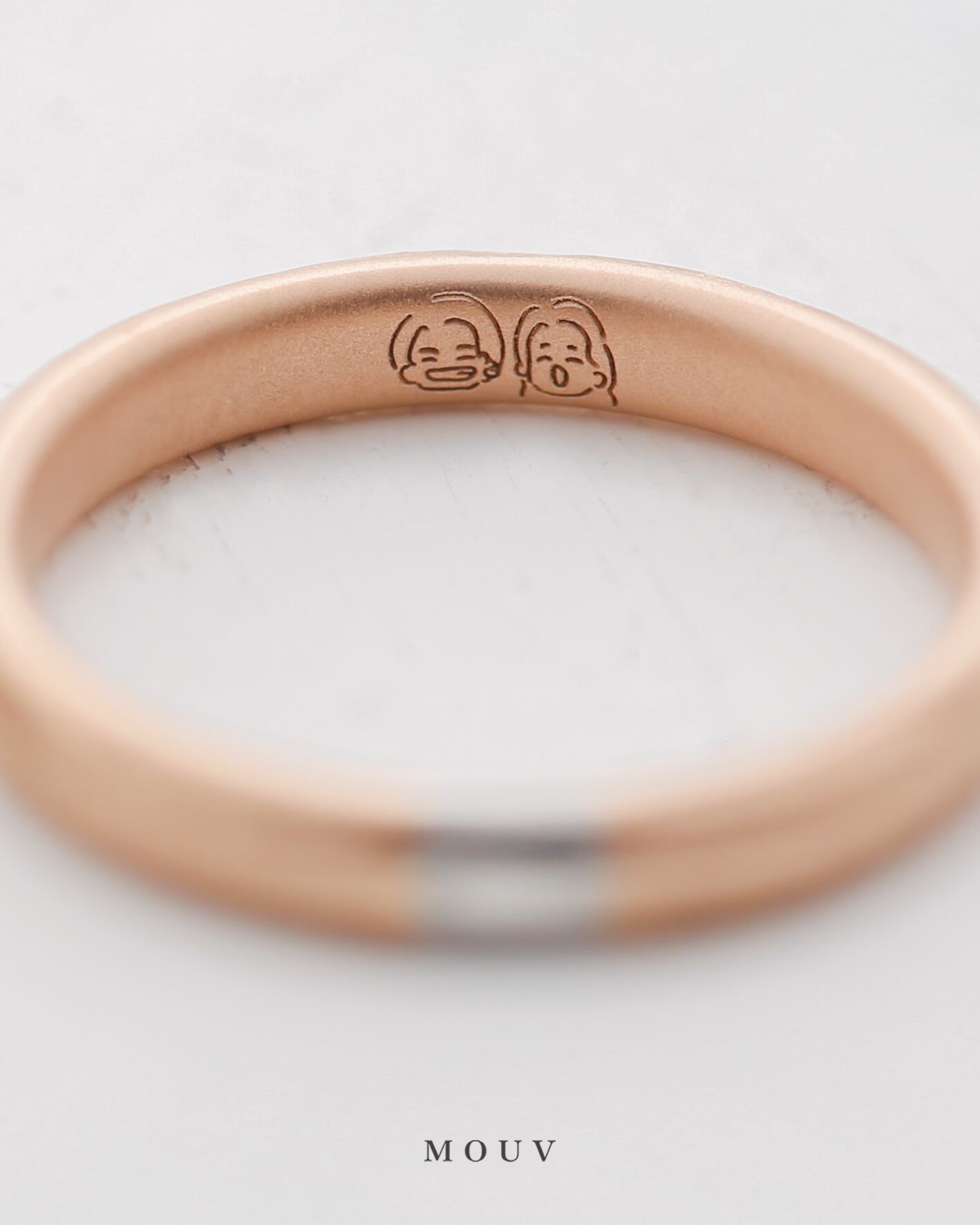 指輪の内側にはさりげなくおふたりの似顔絵の刻印が。